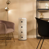 The modular elements were designed to meet different needs and to fit perfectly into every room in the home. Componibili first appeared in 1967 and have become a timeless furnishing classic. Today's Componibili are 32 cm in diameter. Thanks to fixed compositions of two, three or four elements, these products are both functional and practical in all environments. This model comes in six glossy finishes and one matte silver finish.