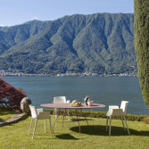 A family of tables ideal for the home and office. The light steel structure is made particular by the use of the cross element that joins the legs on each of the four sides, supporting the top. The collection comprises square, oval and round versions.