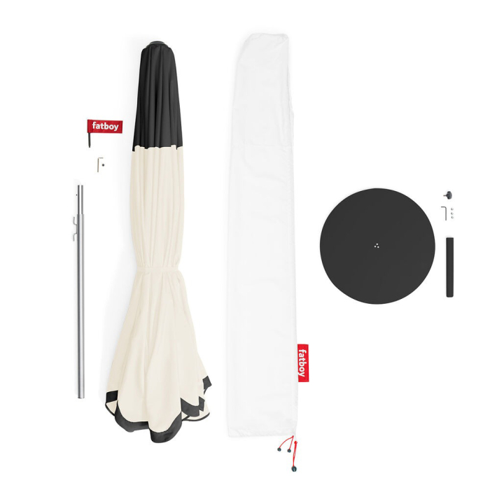 Fatboy parasols really make your garden or terrace summer-ready. Protect yourself against the strongest rays of sunshine while you relax and enjoy the sun without worry. These luxurious unique parasols are sturdy thanks to the firm base, and with the clever pulley system, you can easily open and close them. The iconic Fatboy flag on top of these large garden parasols will show you where the wind is blowing. These sturdy patio umbrellas are available in different designs and colors. On top of that, they fit perfectly with the Ton? Tablo, and you can choose a matching parasol base right away. Each modern, colorful parasol comes with a handy machine washable cover. The frame is made of metal and the fabric is polyester. Compliments the Ton? Tablo, Ton? Tavolo, Ton? Bisterau. Comes with iconic flag.