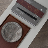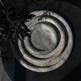 Enkei is a collection of stone objects made from beautiful Silver Travertine. The collection consists of both jars and trays in different sizes and shapes. The geometric shapes, combined with the natural patterns of the travertine, create a striking balance minimalist design and the unique textures of each stone, ensuring that no items are exactly alike. The jars are perfect for storing small items or serving as decorative accents, adding a touch of sophistication to any room. Meanwhile, the trays offer both functionality and style, ideal for displaying other decorative pieces or serving guests in a refined manner. Crafted with meticulous attention to detail, the Enkei collection embodies hand-made quality and durability. The inherent strength of Silver Travertine ensures that these pieces will be cherished for years to come. Whether you're looking to enhance your living space or seeking a unique gift, the Enkei collection offers a refined aesthetic that seamlessly blends form and function.
