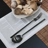 Kogei, the Japanese word for artisan crafts, is all about creating cutlery with a distinct sense of artisan work. Meticulously crafted from high quality metals, each piece in the Kogei collection balances both form and function. The elegant design showcases fine craftsmanship, making every meal a refined experience. The stainless steel option offers timeless elegance with its classic, polished look, while the plated metal black finish adds a modern and sophisticated touch, perfect for chic, contemporary table settings. Both finishes are durable, resistant to corrosion, and feature ergonomically designed handles for a comfortable grip. Whether you're enjoying a casual meal or a formal dinner. The subtle yet sophisticated aesthetic of the Kogei collection complements any table setting, adding a touch of elegance to your dining occasions.