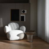 Introducing the Toe Flat Armchair, an ode to 70s futuristic design, reimagined into a modern full upholstery lounge chair. With its striking silhouette, the Toe Flat Armchair features thick and soft upholstery with seamless connections between the different elements, crafting a voluminous and minimalistic shape. A smooth oval-shaped armrest adds both visual intrigue and invites to relaxation, supporting the arms with a soft yet sturdy feel. The sculptural quality of the Toe Flat Armchair transforms it into an artistic centrepiece in any room, while a meticulously balanced combination of premium foams ensures a high seating comfort. Embodying both the aesthetics of the 70s space age and the luxury of modern craftsmanship, the Toe Flat Armchair offers a distinct, elevated experience in lounge seating. For an enhanced relaxation experience, pair it with the Toe Ottoman to elevate your seating comfort and invite a full lounging experience.
