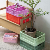 Organize your life with Made Crates! These colourful, collapsible crates come in a variety of sizes - perfect for tidying up any space, from nursery to playroom to office. Each crate is made from 100% recycled plastic, and designed to be stackable across the three sizes. Two midi crates fit on top of 1 maxi, and two minis on the midi, ensuring they lock together to stay secure. Featuring a variety of different colours to make organising your home a bit more fun, the crates have an elegant and clean design to compliment the Nordic interior style.