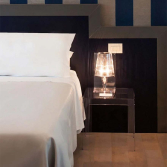The classic icon of the bedside lamp is revisited by Kartell's technology to become an industrial product in a variety of colour shades. The shape of Take is the result of the joining of two specular parts: two flat, rectangular sheets which, from being two-dimensional at the centre, take on the shape and volume of a 'semi-lamp'. The internal pleating of the diffuser embellishes the object, creating, when lit, a play of reflections.