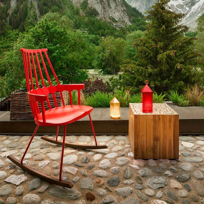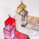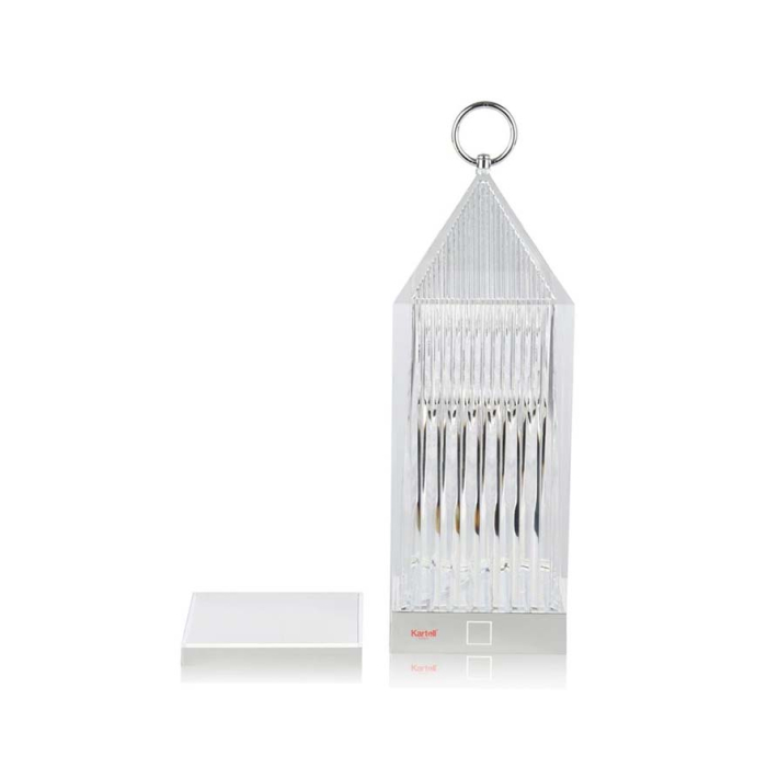 Lantern is an original portable LED, transparent, 'chargeable', injection moulded lamp that charges by placing it onto a charging base. The light is projected by a graphic effect of the design.