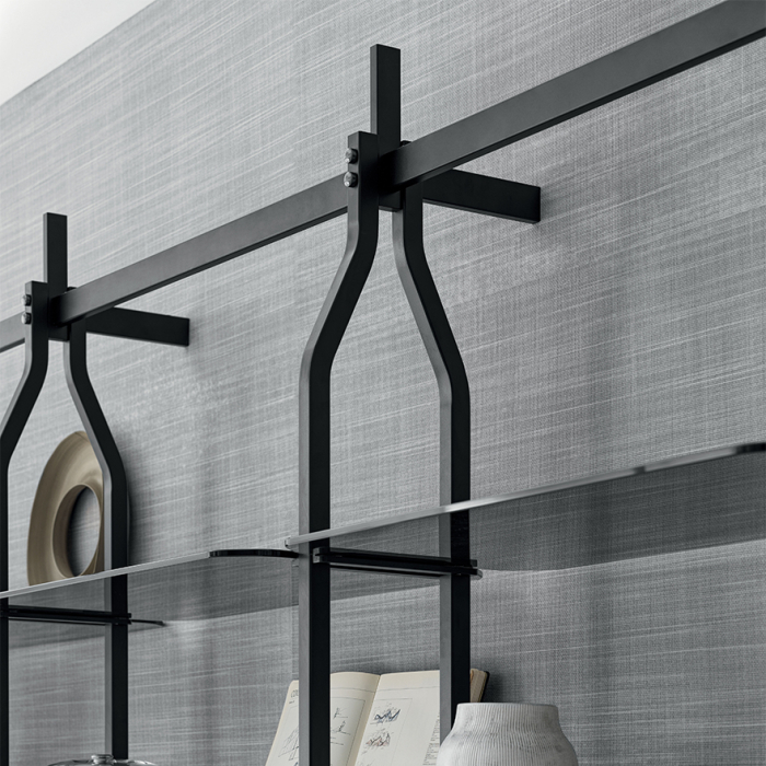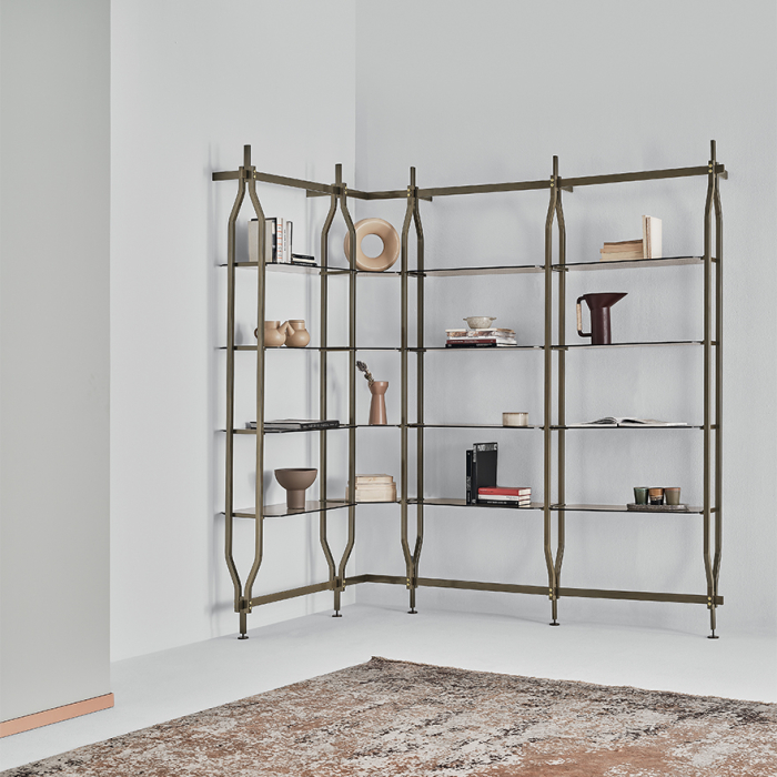 The Charlotte Bookcase by Bontempi Casa is a contemporary bookcase with an open-style lacquered metal frame, available in a selection of wall mounted or floor-to-ceiling ?room divider' sizes. An array of lacquered metal colours can be complemented with matching or contrast details to the top and bottom fastenings.