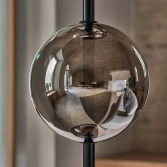 This is supported by a lacquered metal stem and circular base. The sphere can be rotated freely in order to adjust the angle of light.