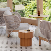 Aluminum Inspired by joyful holiday moments in life, the Mooncake stool is shaped like a traditional snack in the Mid-Autumn Festival, with continuous arc design and bright colors, presenting a light and cheerful playfulness. This all-aluminum stool is waterproof, easy to clean and maintain. It is suitable as an item to decorate the courtyard or indoor space. It can also be used as a side table to create a vibrant atmosphere.