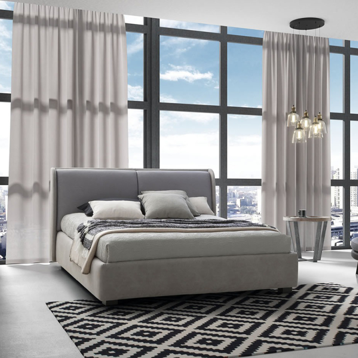 In line with the savvy inventiveness that is typical of the most innovative industrial style, Windsor interprets with originality the traditional outlook of the headboard. In fact, the latter wraps the platform at its base, and serves as an elegant and solid shell, provided with the capability to host two different and spacious pillows. The resulting synthesis breaks up with linearity in favour of a calculated rhythmic effect.