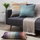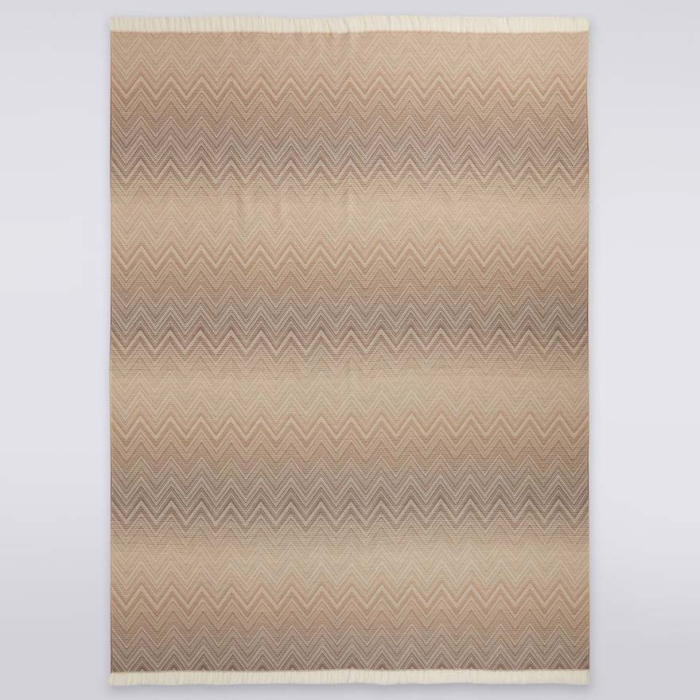 An elegant, simple offering of subdued color, the Timmy Throw stays true to Missoni Home's heritage. The sharp, thin chevrons of this modern throw blanket vary in their subdued shades almost winking in and out of existence. Woven from 100% wool, the Timmy Throw offers an ideal combination of softness, warmth, durability and a playful finish with its loose fringe.