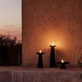 Inspired by ancient torches, the Meira Oil Lantern in powder-coated steel illuminates outdoor spaces as the sun sets. Designed with a refillable oil chamber, the ambient design emits a large, wide flame from its centre. The lanterns include a removable plastic cap to prevent water entering the chamber when not in use. Available in four sizes with a rust-resistant finish.