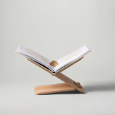 The NM Bookstand in oak is crafted to elevate and showcase a cherished page.