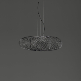 Each structure is composed by nearly 100 steel rods welded one by one. It's an artisanal lamp that reminds traditional wicker baskets. Different shapes and different finishes can be combined.