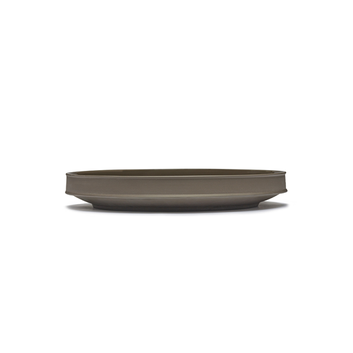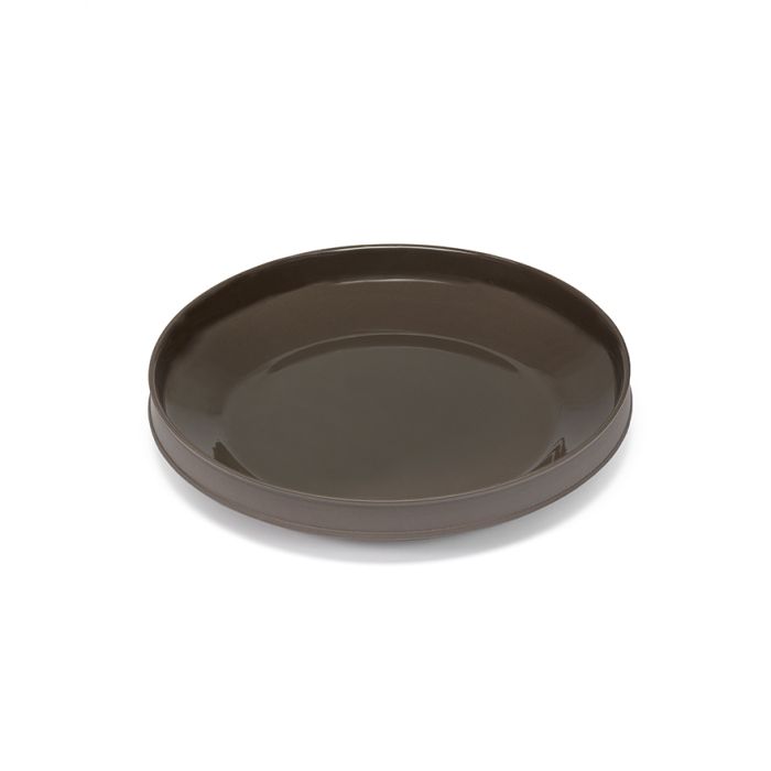 This dark brown porcelain bowl is inspired by ancient ancient techniques and is characterised by a two-tone finish. The sculpted finish and rim create a striking contrast.