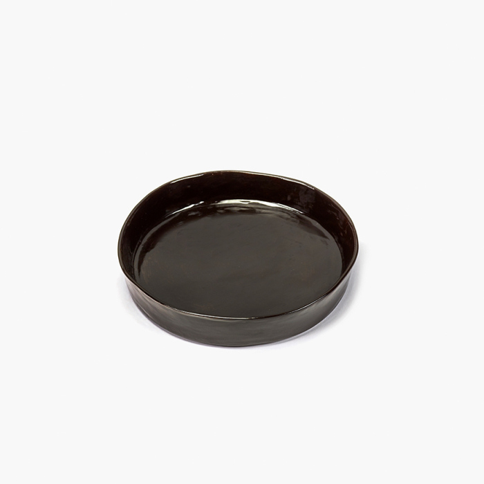 These medium-sized deep stoneware plates are both functional and beautiful thanks to the artisanal approach and characterful materials which designer Marie Michielssen chose to use. These plates, which have been finished with a warm dark brown, almost black glaze, are part of the La Mere collection.
