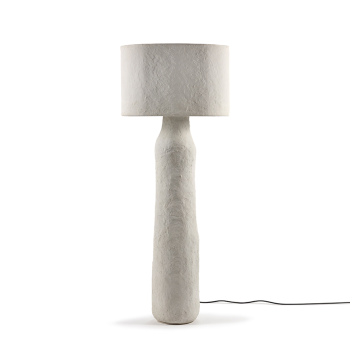 Resident designer Marie Michielssen completes her successful Earth lighting with two larger versions of her table lamps. As always, the paper mache material creates a poetic atmosphere and balances these floor lamps on the fine line between art and design.