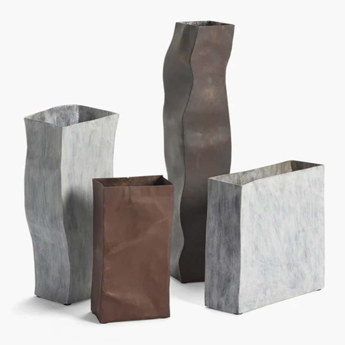 Vase 04 is a creation by designer Antonino Sciortino. The vase brings sleek geometry and wavy organic shapes to life. The rust-brown hue reflects the depth of the material, similar to a ship's walls. This waterproof vase illustrates Sciortino's craftmanship of capturing the fluid and sculptural in metal.