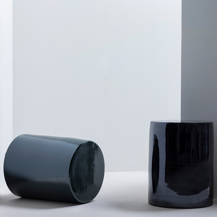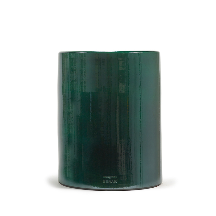 This earthenware side table in dark green, with its cylinder shape, makes for an organic design. This side table belongs to the Pawn collection by Marie Michielssen and offers answers to the demand for eclectic design.