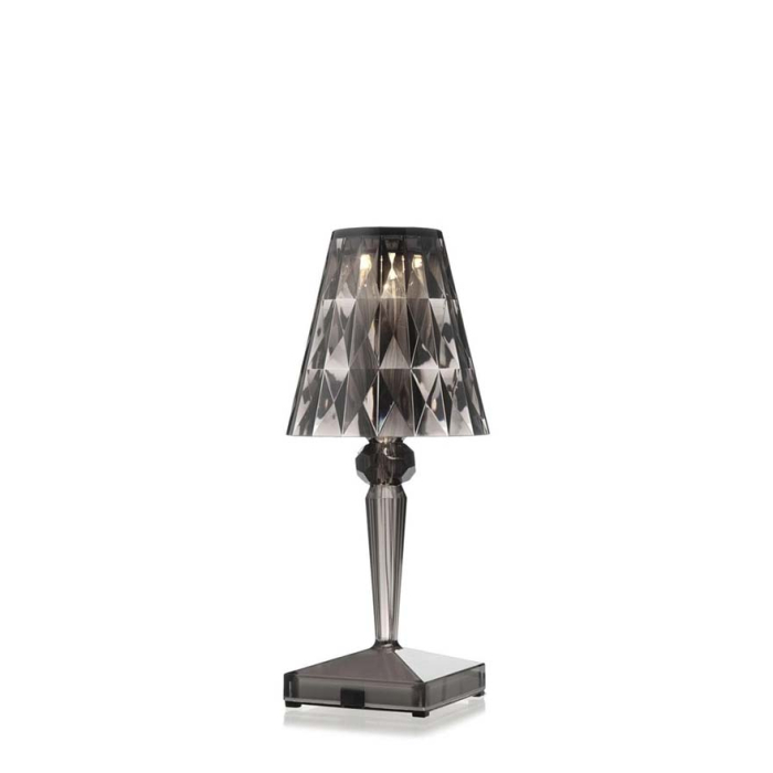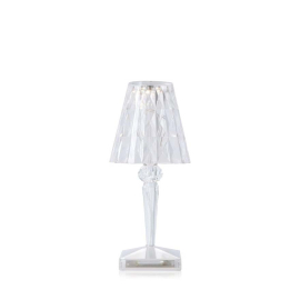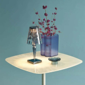 Battery is a compact table lamp innovatively characterised by the fact that it is 100% rechargeable thanks to a simple electric plug, with up to eight hours of battery life. This makes it easy to move, ideal for temporary contract set-ups, for use in cafes or in open air restaurants.
