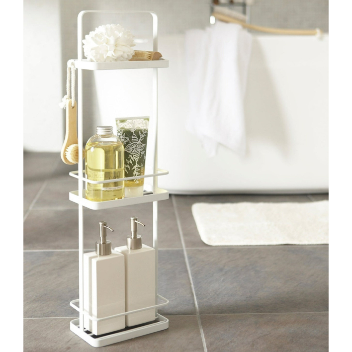 Add a splash of fun to your shower. Skip the wall holder and opt for a free-standing caddy with plenty of room for bottles and soaps. If you have lotions galore spilling over your bathtub, try a freestanding caddy like this one to organize and declutter your bath area, it can hold a whole loofah scented shampoos, soaps, and scrubs! This taller version of our standing shower caddy gets the job done while taking up less real estate in your bathroom or bathtub. Great for storing taller, bulkier shampoos and conditioners. This sturdy caddy is perfect for holding shampoos and accessories. Keep your soaps and salts handy during bath time. A stylish and mobile caddy for bathroom cleaners or other products.